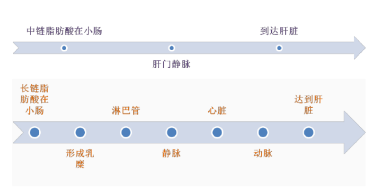 MCT最大的特点是分子量小,吸收快。与长链脂肪9弯18弯的代谢方法相比,MCT简单粗暴:胰脂酶和胆汁盐不需要胰脂酶和胆汁盐直接从门静脉消化。