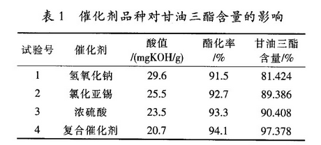 催化剂在新葵酸甘油酯合成中对甘油三酯含量的影响